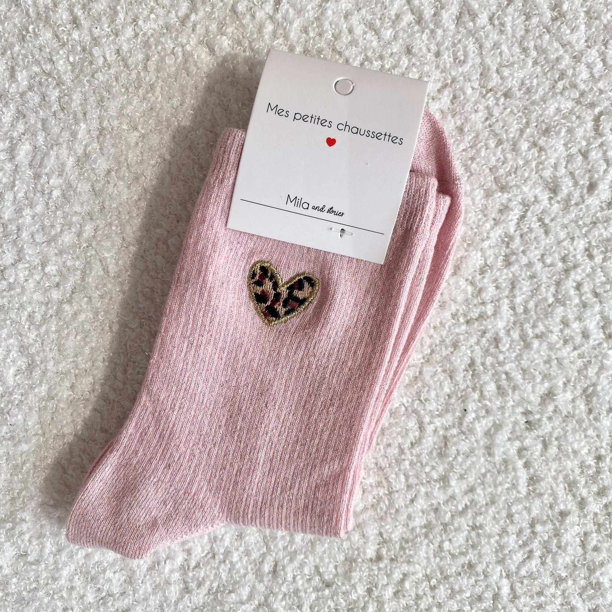 Chaussettes Cœur Léopard - Rose