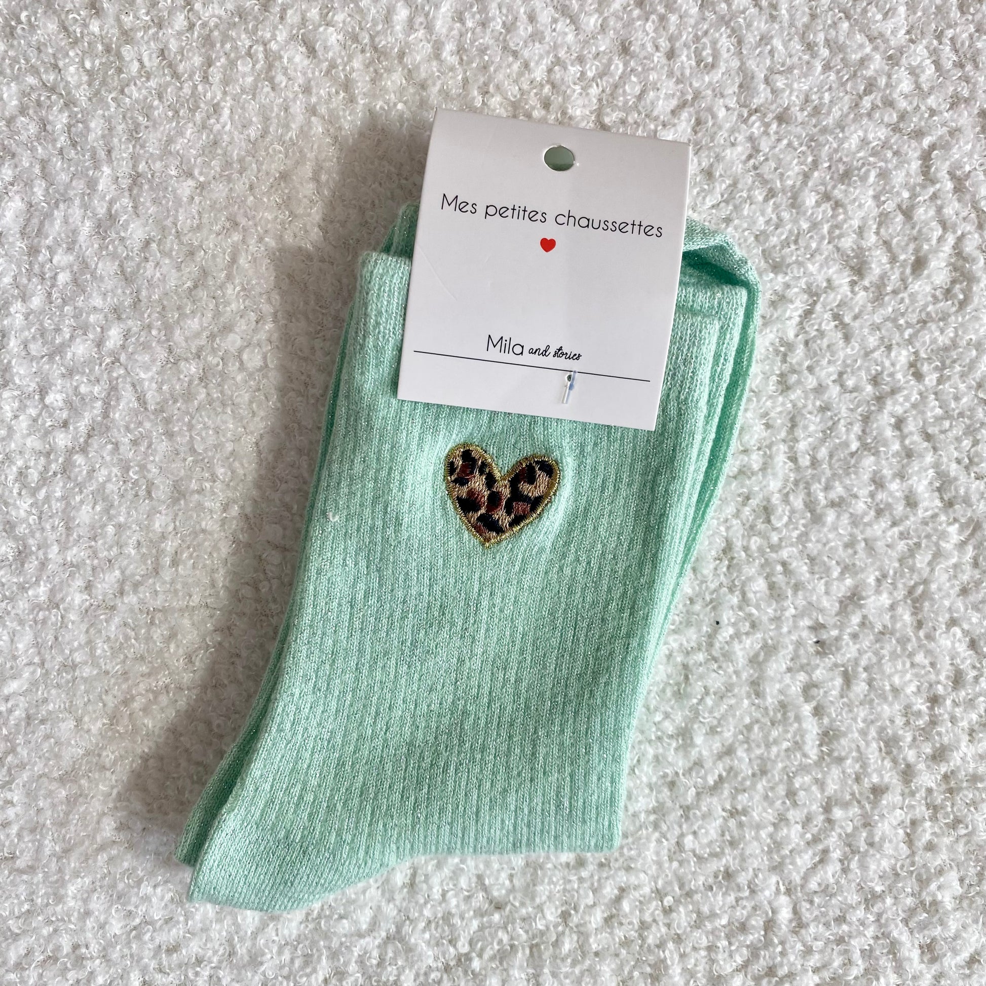 Ces chaussettes mi-hautes vert d’eau à paillette apporteront une touche d'élégance et de fantaisie à vos pieds. Avec leur cœur léopard, elles évoquent une féminité assumée et une pointe d'audace. Taille unique du 36 au 40, elles s'adaptent parfaitement à toutes les morphologies.